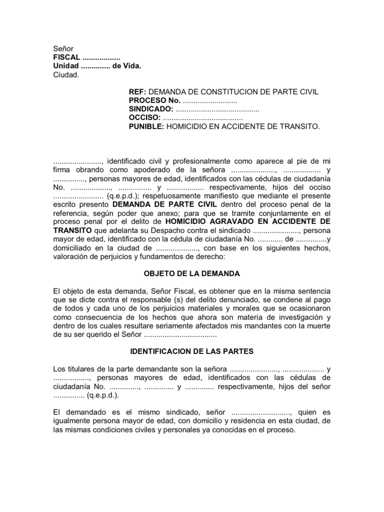 Demanda De Constitución De Parte Civil Por Homicidio En via es.scribd.com